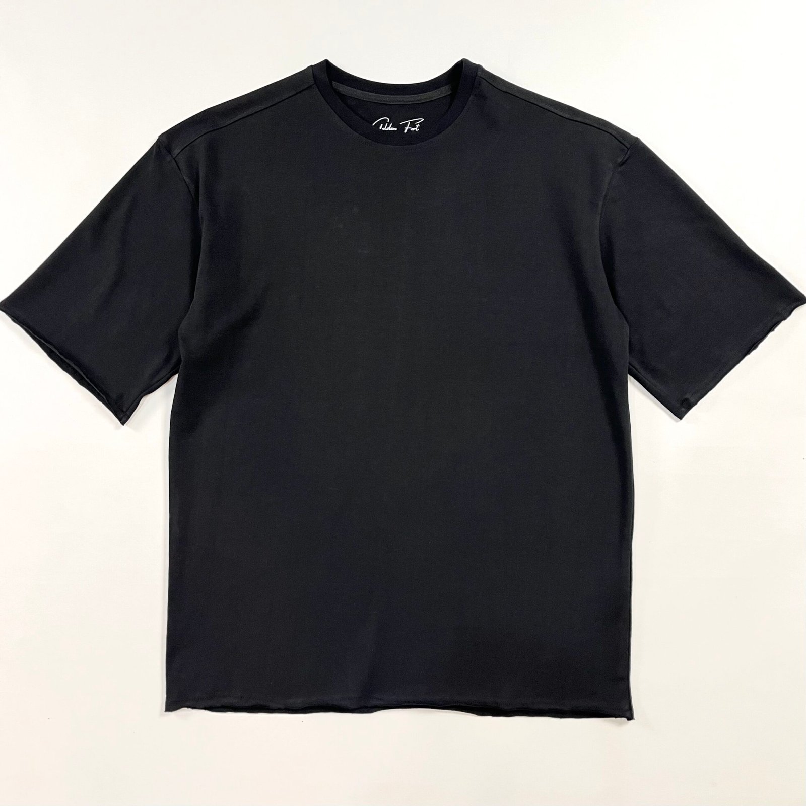 “A black t-shirt with a trendy design and raw, unfinished edges — adding a touch of casual yet unique style. Made from a comfortable cotton blend for durability. Simple and sleek, perfect for a laid-back look.”